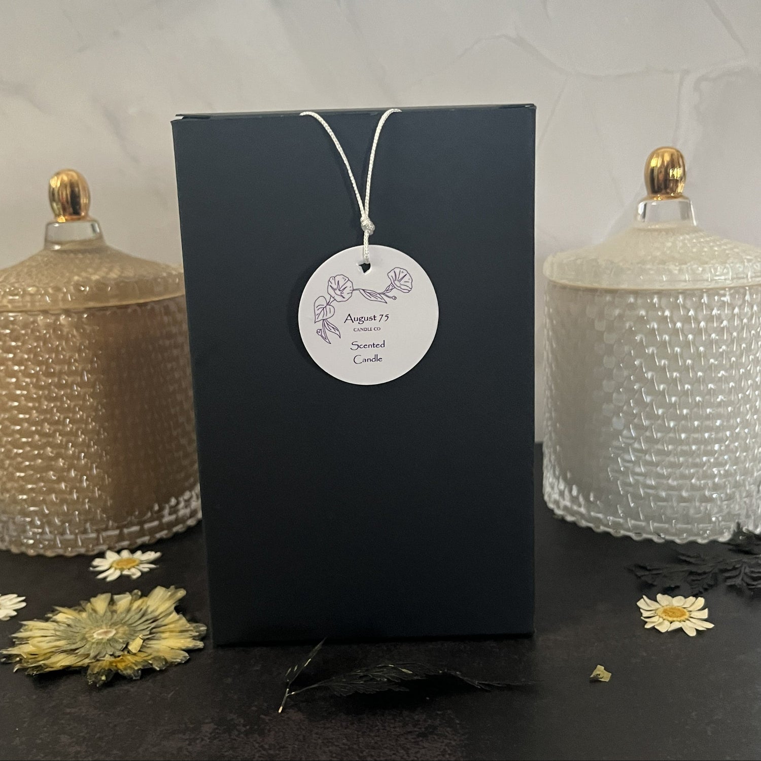 Our candles are elegantly packaged in custom black boxes, designed to protect the vessel and add a touch of sophistication for the recipient.
